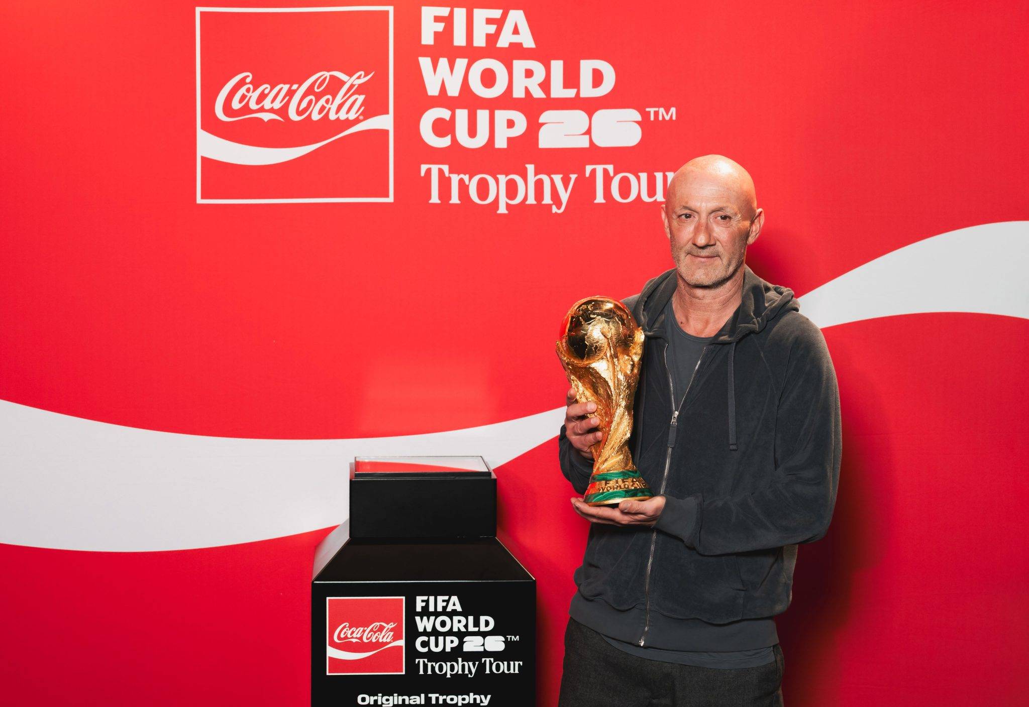 There are only four months to go until the kickoff of the 2026 FIFA World CupTM, which will be held from June 11th to July 19th in the United States, Canada, and Mexico. For the occasion, the official trophy was presented last night in Paris during the FIFA World Cup Trophy Tour by Coca-ColaTM at the adidas Home of Sport on the Champs-Elysées: a unique opportunity to admire up close this holy grail lifted twice by the French soccer team. A competition was organized to give a lucky champion the chance to enjoy a special one-on-one moment with the real FIFA World CupTM trophy, which weighs over 6 kilos of solid gold.