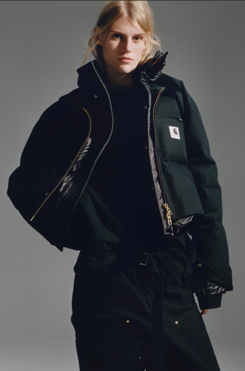 This one marks the third collaboration between the Japanese queen of hybridisation and the iconic American workwear label. Seamlessly, the best of their signature styles come together in this unique 18-piece collection. Skirts, leather jackets, tops, puffer coats, cargo pants, dresses, or even jumpsuits, the potential of this collaboration knows no limits, except for those of available stock. As chic as it is versatile, the line is dominated by an earthy colour palette, enlivened by hints of forest green that give it a contemporary feel.
